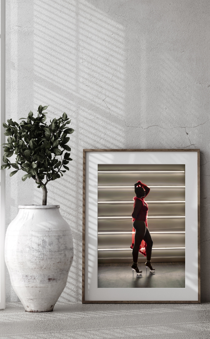 Metal wall art transforms your boudoir images into sleek aluminum pieces, putting you in the spotlight with vibrant color and lasting detail. Available in a variety of sizes, perfect for your closet, bedside, or bathroom.
