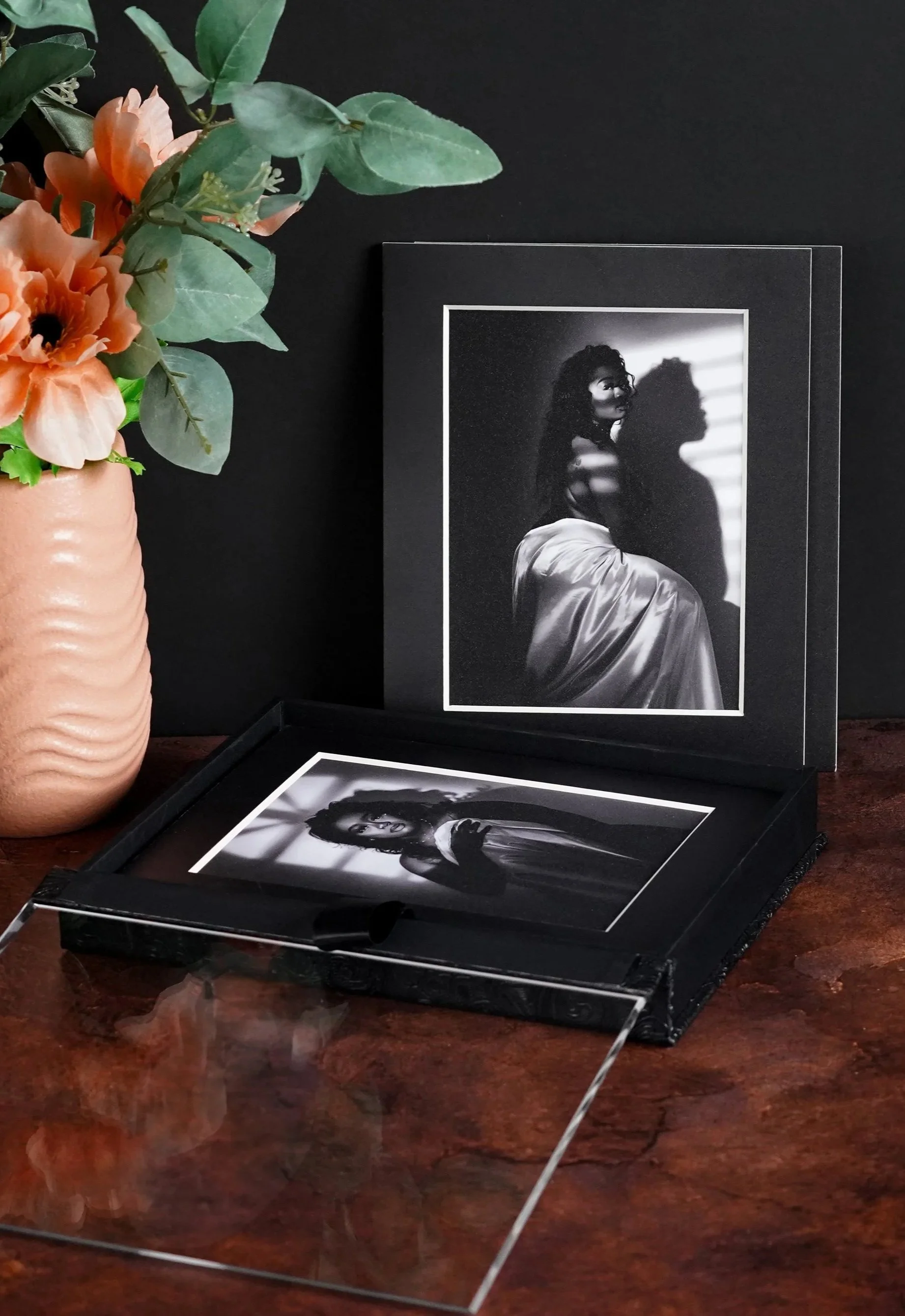 8×10 matted prints with your choice of black or white border, complete with a display box. Easily add your own frame to hang or create a custom collage wall.